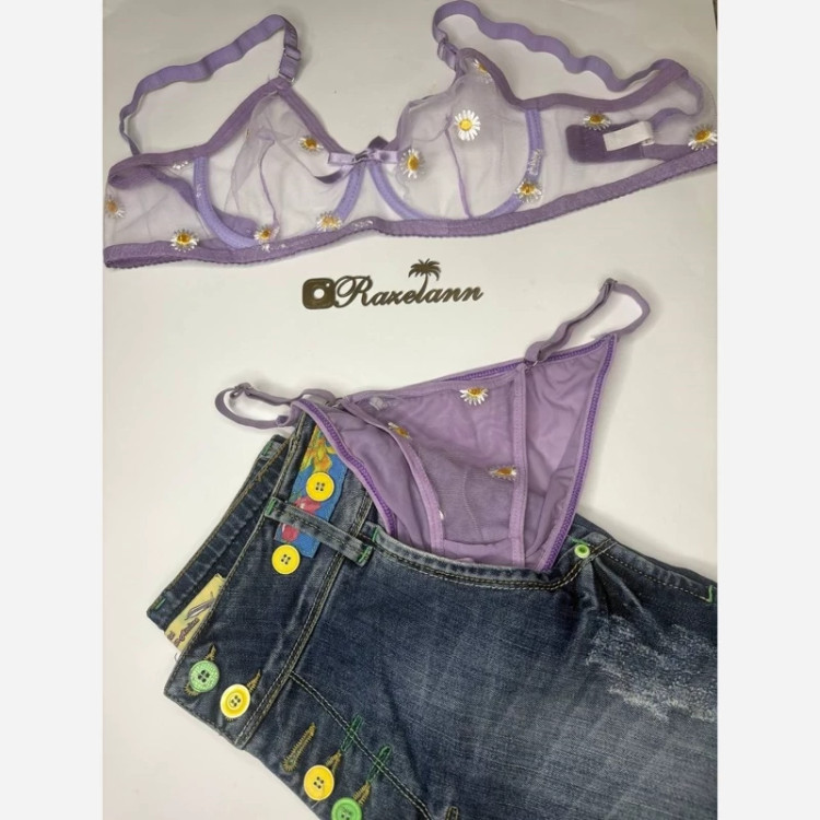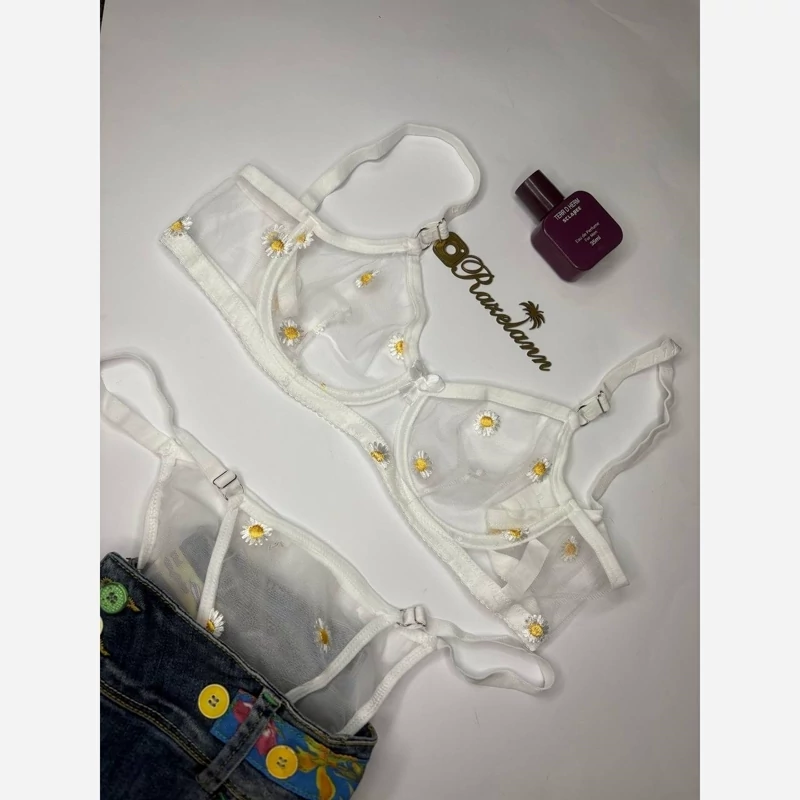 ست زنانه شورت وسوتین تور شیشه ای مدل بابونه