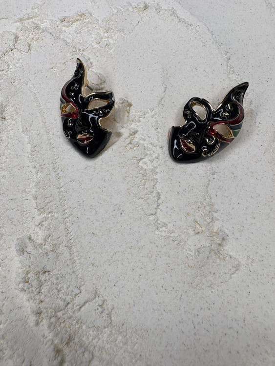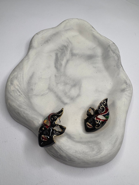 گوشواره طرح صورتک فرم طلایی وبا ترکیب رزین رنگی یه کار زیبا وشیک وخاص رو تشکیل داده