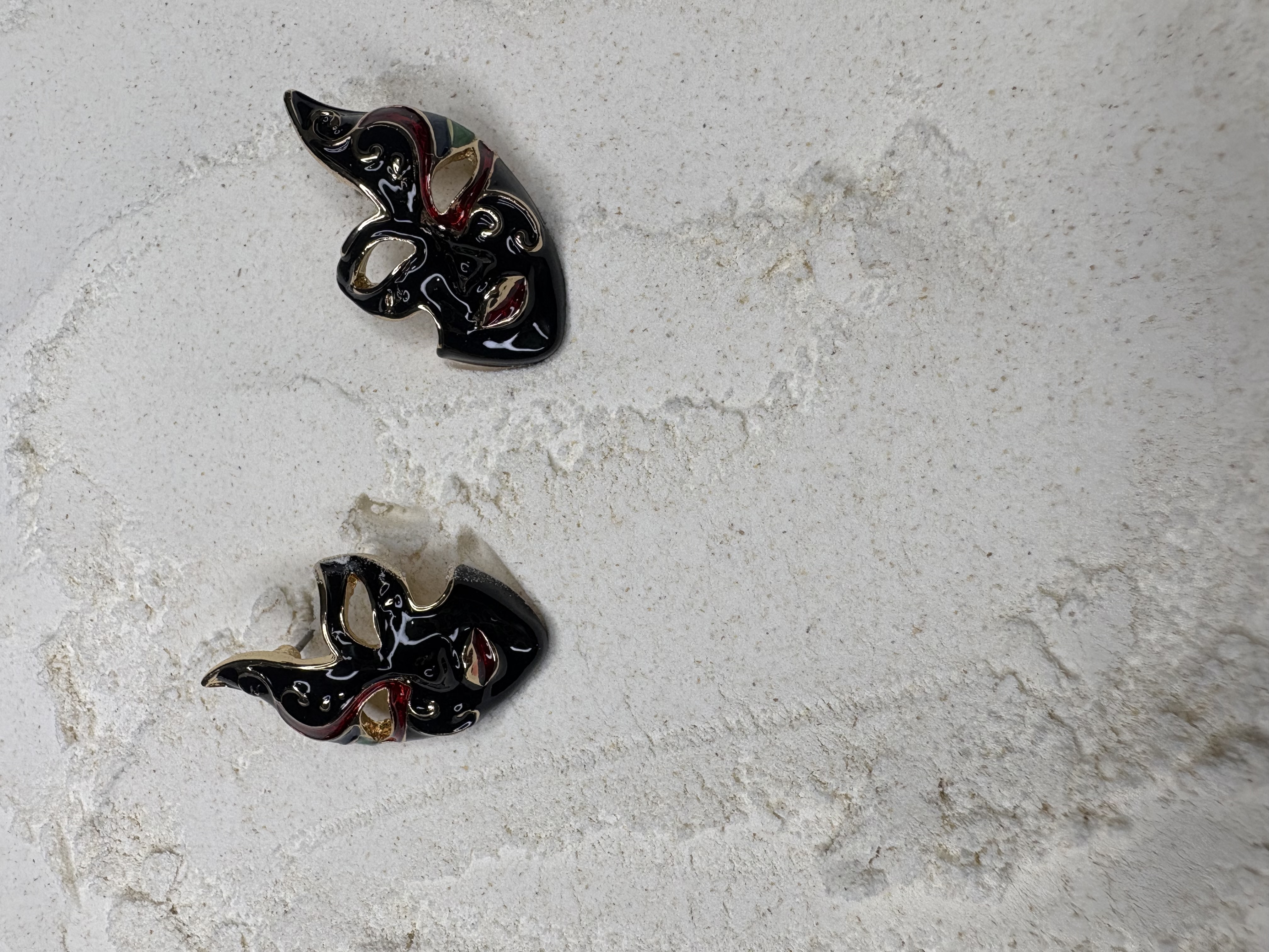 گوشواره طرح صورتک فرم طلایی وبا ترکیب رزین رنگی یه کار زیبا وشیک وخاص رو تشکیل داده